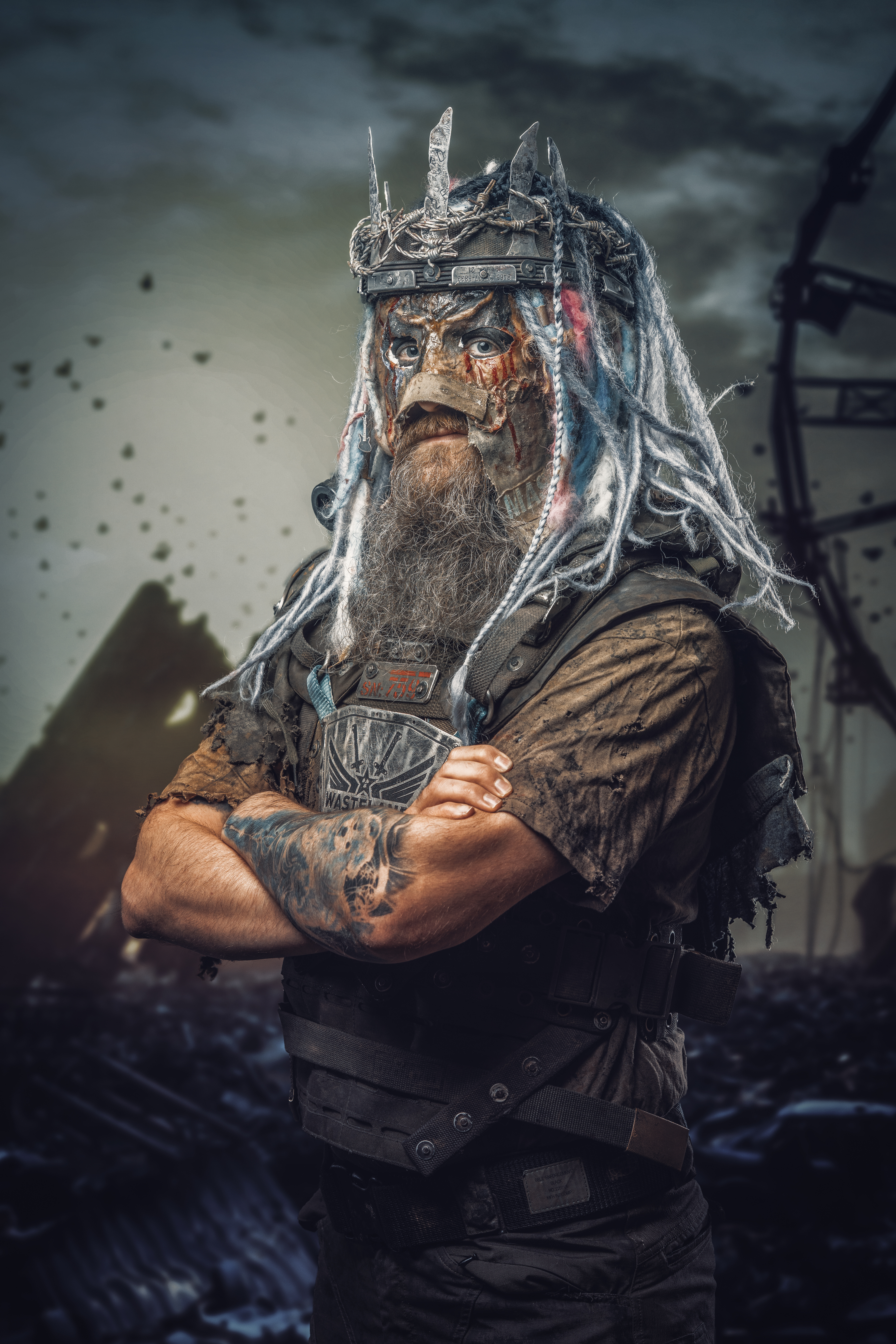 As the Wasteland Messiah, he now finds his true purpose: After the catastrophes and wars of the past decades, and the dissolution of the C.R.O.W., during which he served as a priest tending to the spiritual well-being of his comrades, Mashl J. sought a new mission, a deeper meaning.